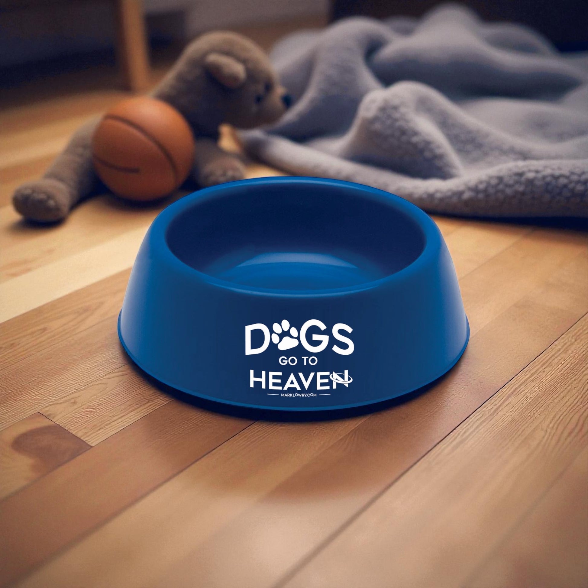 The daily reminder for Fluffy that dogs go to Heaven too! This blue plastic dog bowl is approximately 8" in diameter with the Dogs Go To Heaven logo in white.
